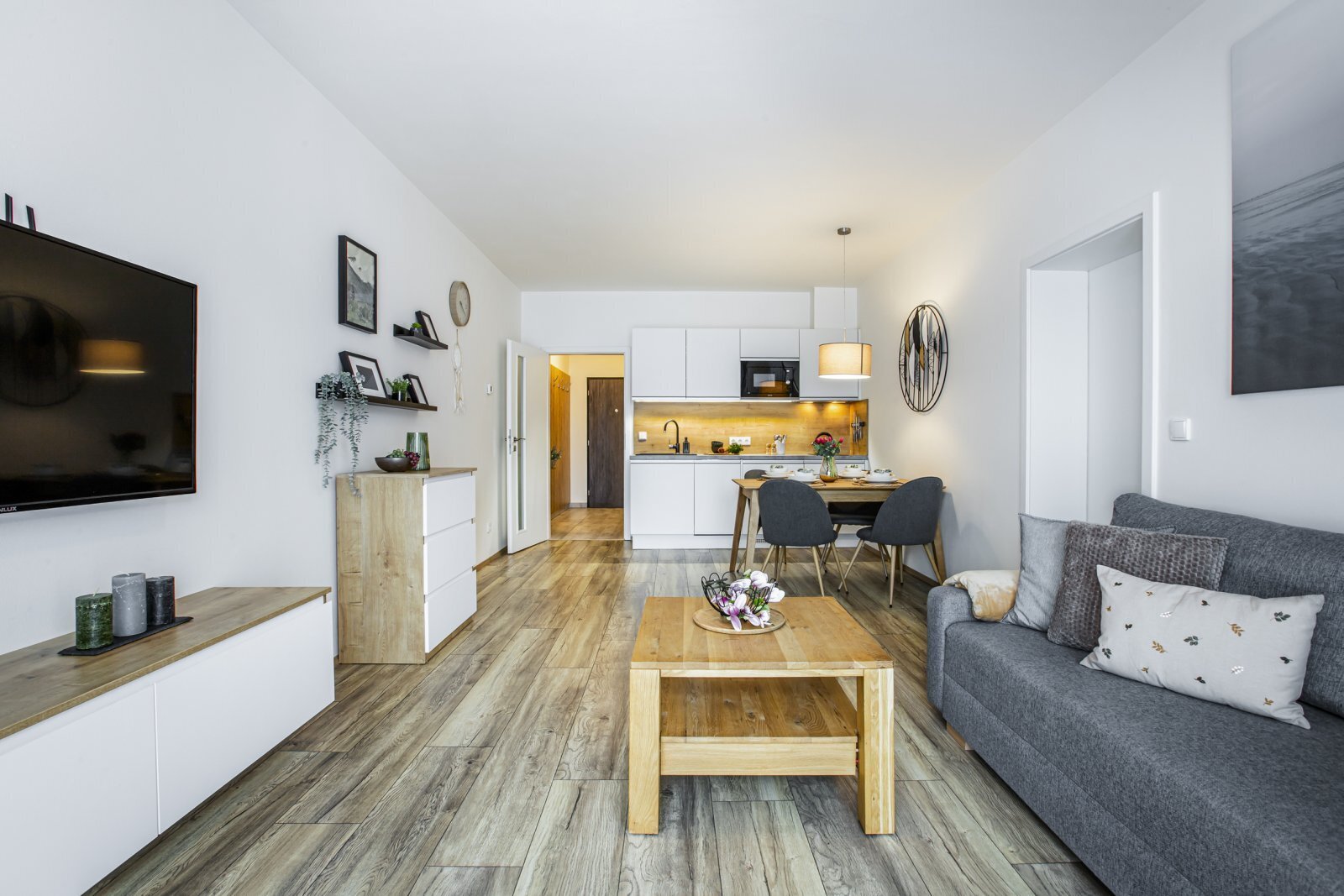 Jezdíte rádi na Lipno a chcete tu mít svoje zázemí? Pak se přijeďte podívat do rezortu Korzo Lipno, který najdete 200 m od vody a kousíček od centra města, v klidné části s krásným výhledem a skvělým zázemím. V prvním patře zde najdete prostorný apartmán 2+kk, kompletně vybavený nábytkem, s prostornou ložnicí, kam se vejde 4-členná rodina a velikým balkonem (11 m2), který je přístupný z obou pokojů a navíc orientován na západ. Kuchyně je také kompletně vybavena – myčka, lednice s mrazákem, sklokeramická deska, mikrovlnná trouba. Koupelna se sprchovým koutem, WC a pračkou. Na oknech nainstalovány elektrické předokenní žaluzie. Ústřední dálkové vytápění – plyn + tepelná čerpadla. PENB třídy B, nízké měsíční náklady. V ceně je kryté parkovací stání v přízemí domu, stejně jako sklepní koje. Samotná orientace apt. směrem na Lipno Vás při jakékoli návštěvě či návratu bude bavit. A pokud hledáte něco, co můžete i dále pronajímat, tak je tu k dispozici kompletní správa apartmánů s výborně fungující recepcí. Novostavba z roku 2023, takže se na ní vztahuje ještě stavební záruka 1 a půl roku. Více info v RK.
